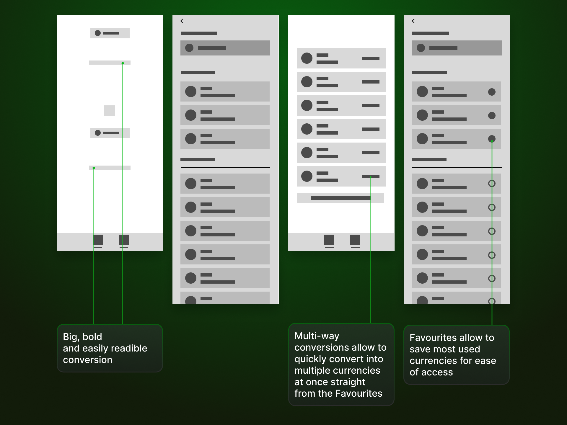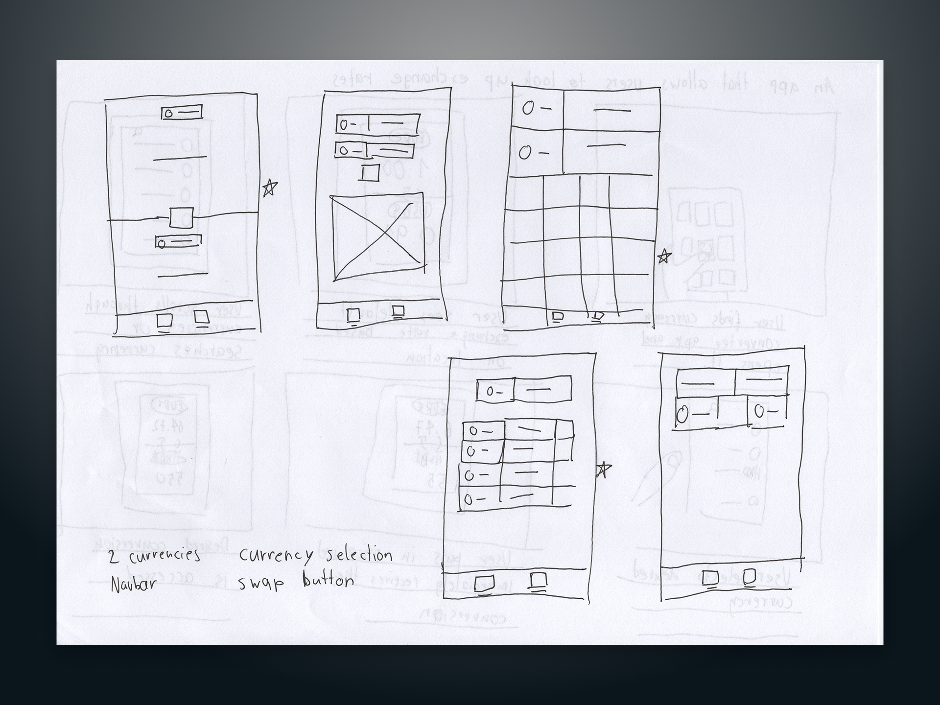 I started by sketching some paper wireframes that focus on minimizing steps from input to conversion and created storyboards to better understand the real-world usage contexts. I marked compelling aspects from the wireframes with stars to later translate them into Figma wireframes.
