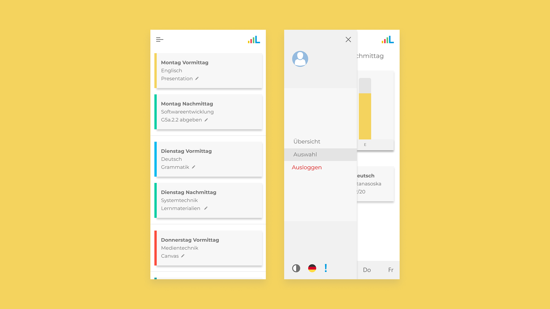 The mobile web app offers a stacked view and works in a nearly identical way to the desktop site. Students can select the desired classes on the Overview Page by long-pressing instead of right-clicking. On the selection screen, the bottom navigation offers the selection of the day.